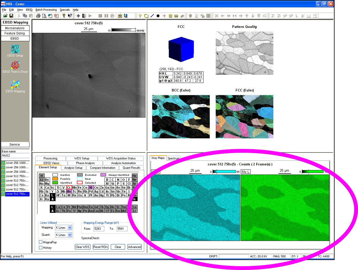Basic and Advanced Level: SEM image acquisition, Simultaneous EBSD, EDS and WDS, Tilt corrected