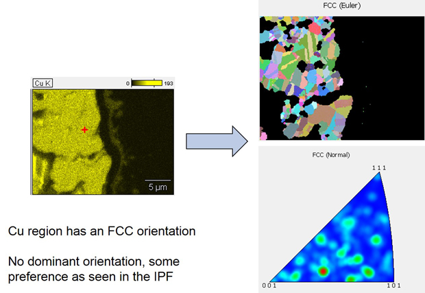 Thermo EBSD시스템은 EDX NORAN System 7™ 과 완벽한 시스템통합을 통하여 화학 정보와 함께 물질의 Crystal Structure 분석결과를 제공합니다.