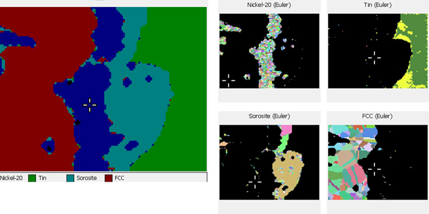 UVW orientation map, Euler orientation map, Phase maps, X-ray map, Grain boundary axis and angle